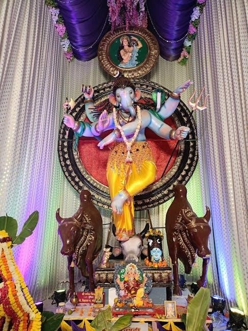 Many PDF versions include accompanying rituals and mantras, providing a comprehensive guide for performing a complete Ganesha Puja.